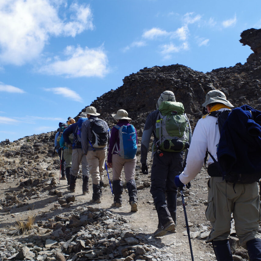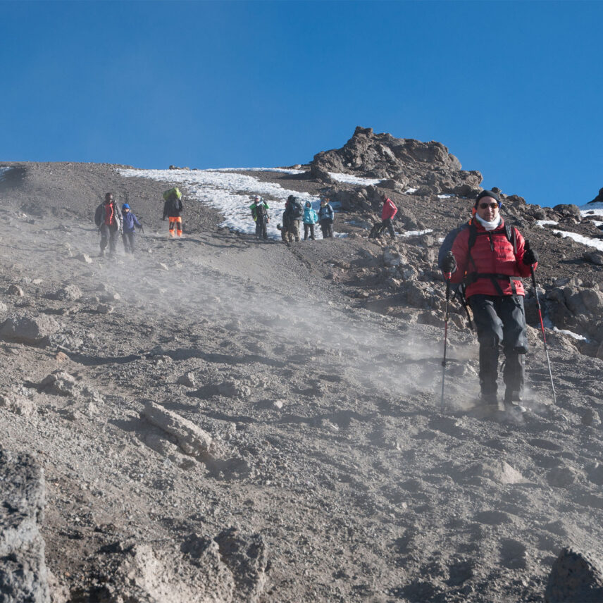 See the famous Ash Pit during a morning hike to Reusch Crater, or summit for a second time as the sun rises. A steep descent brings you to your final Kilimanjaro camp.
