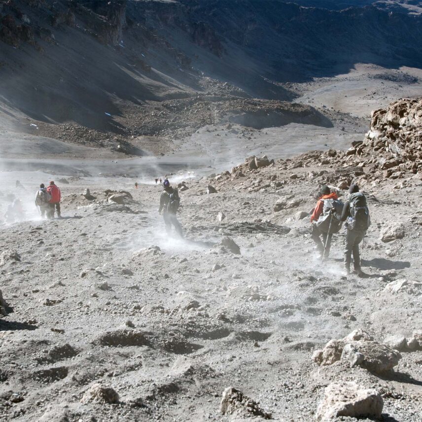 Trek across the stark Saddle to the foot of Kibo (Kilimanjaro’s highest cone). Rest up in preparation for tomorrow’s daytime summit bid.